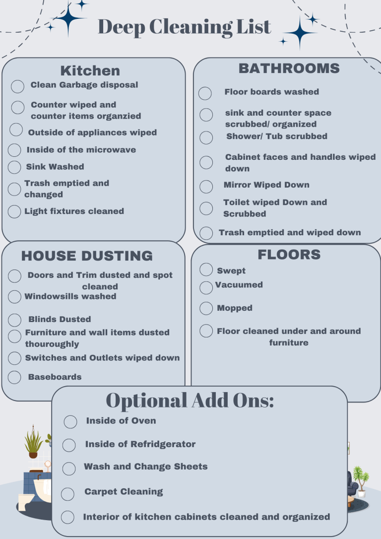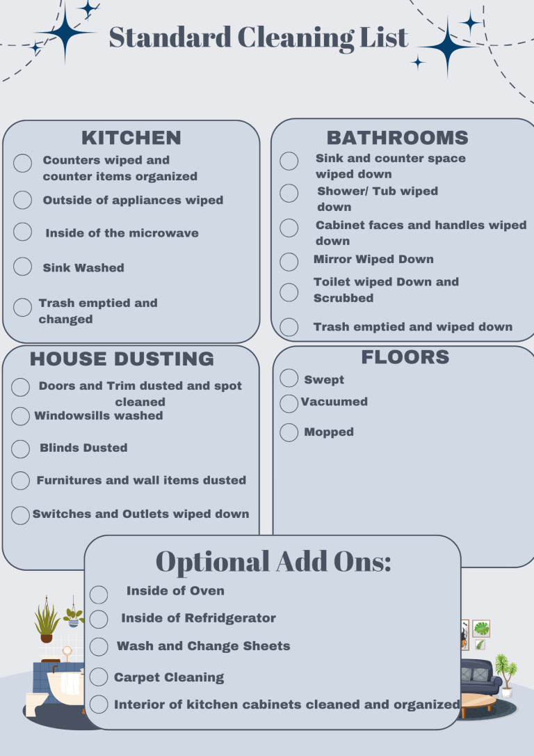 Our services include two options: the “Essentials” package, which provides standard cleaning, and the “Deep Cleaning” package, designed for a more comprehensive clean. Just tell us your preference, and we’ll handle everything from there!